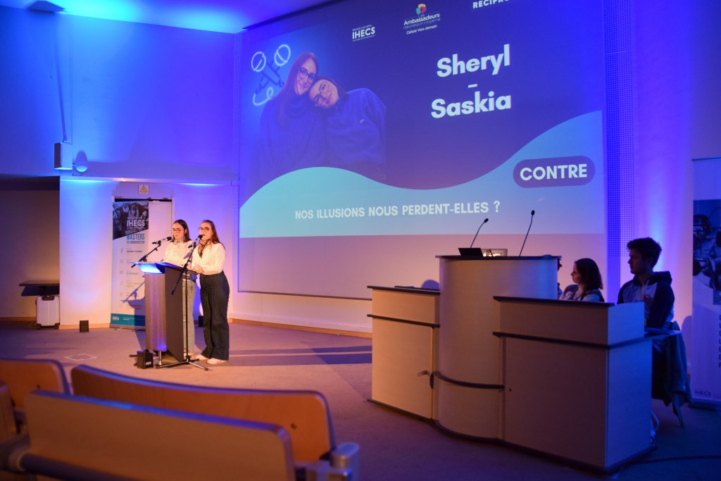 The audience was therefore able to watch Emy Windels and Thelma Duval speak in favour of the motion "Are our illusions really losing us" in opposition to to Saskia Segonds and Sheryl Sümer who defended the contradictory position; the motion "Is the joker really a trump?" was tackled by Hind Makoudi and Golnousch Nematkhah (for) and Nina Demily and Elöise Borreman (against); finally, Daphné De Groote and Anne-Catherine Lebecq argued in favour of the motion "Is there a pilot on the plane?", while Sydney Jara and Adrien Provost defended the opposite position.