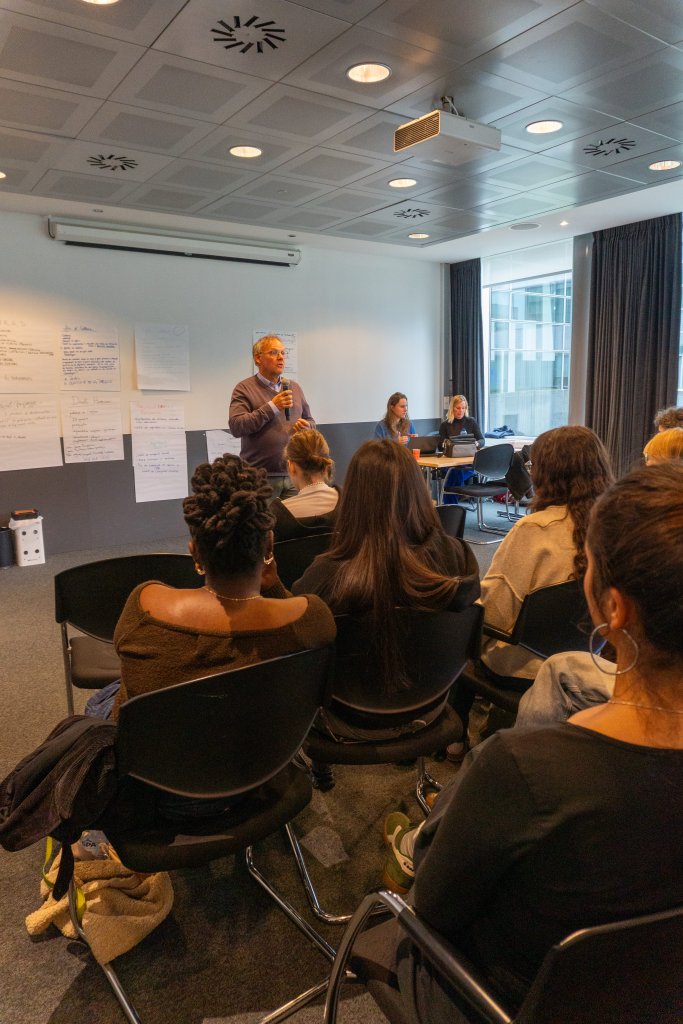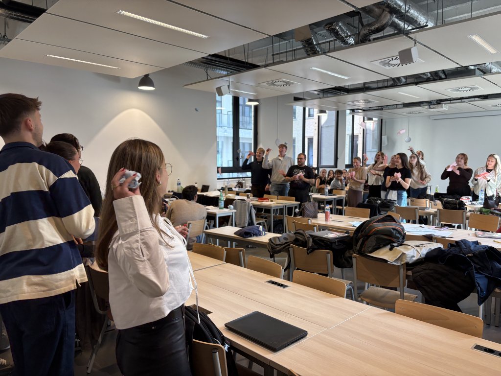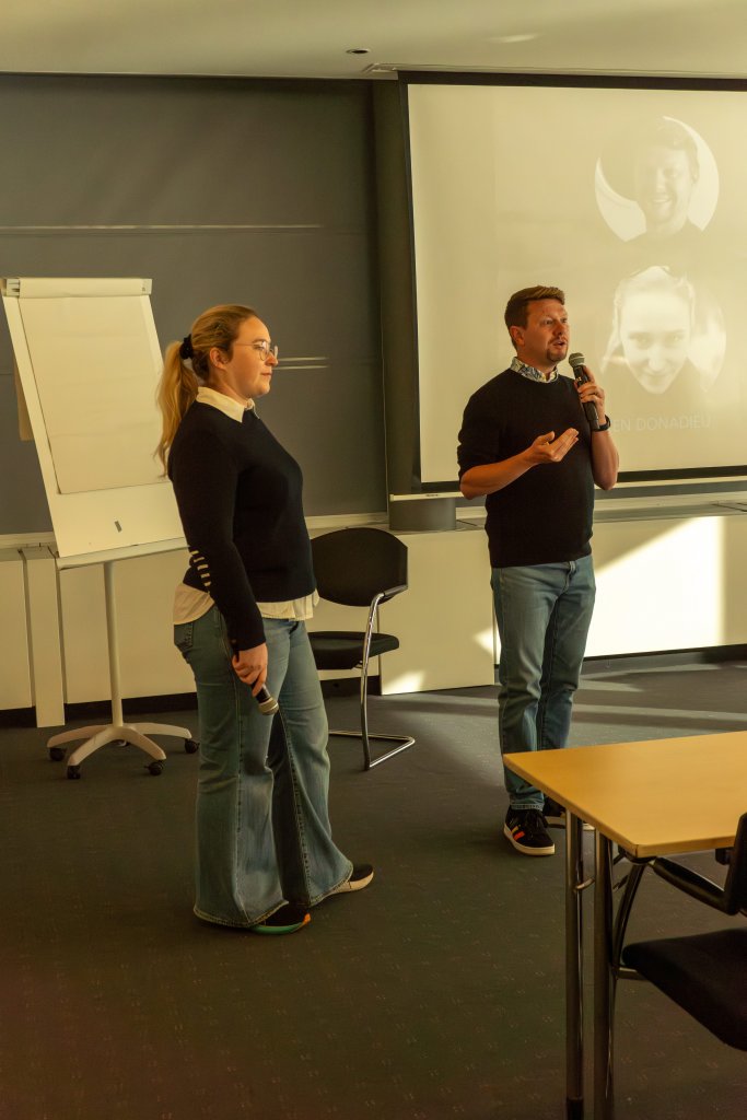 La journée s’est poursuivie dans une atmosphère moins académique grâce à différentes activités comme un « empathy walk » en duo pour apprendre à se connaître autrement et un atelier « Team Canvas » en petits groupes pour mettre en lumière leurs propres compétences et qualités. En fin d’après-midi, les équipes ont présenté leur identité sous la forme d’« agences », un exercice créatif qui a déjà permis à toute la promotion de se préparer aux challenges qui les attendra dans le cadre de leur mémoire médiatique.