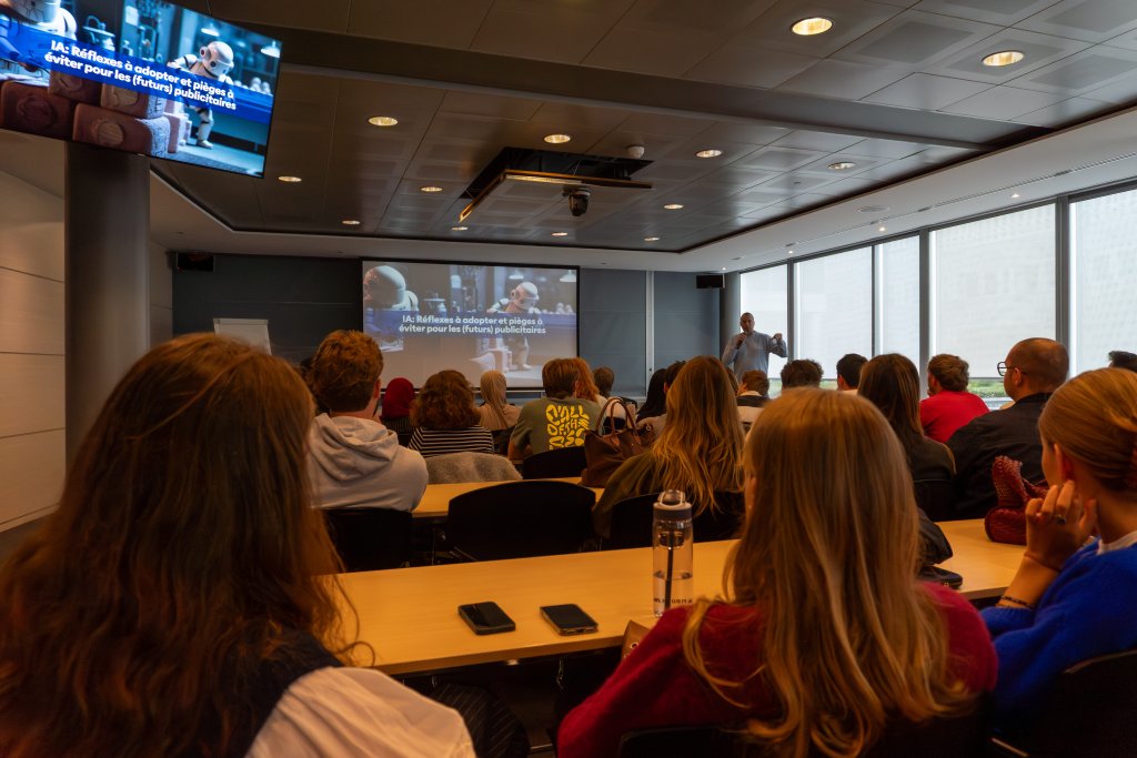 La première matinée a été divisée en trois temps forts : une présentation du master par Michael Marchand, président du master, et Sophie Pochet, gestionnaire académique, un focus sur le programme comprenant trois nouveaux cours orientés sur l’intelligence artificielle et la session inaugurale animée par Sébastien Vanwelde, centrée sur la place de l’esprit critique face aux enjeux de l’IA.