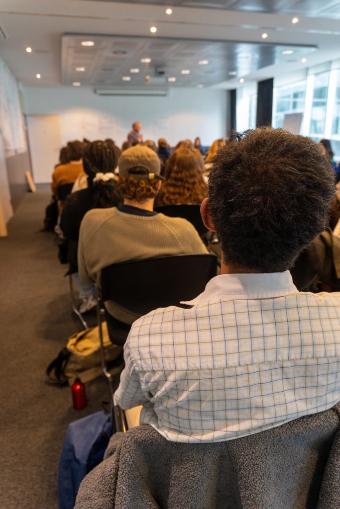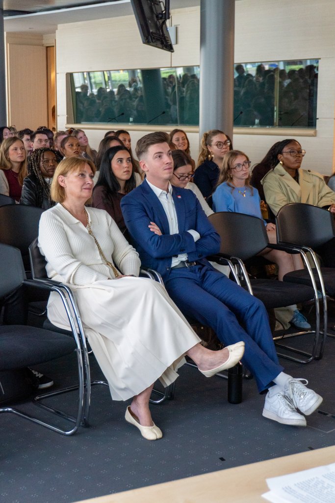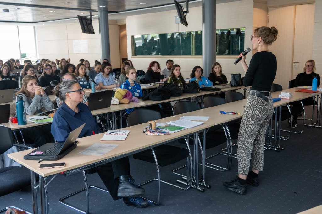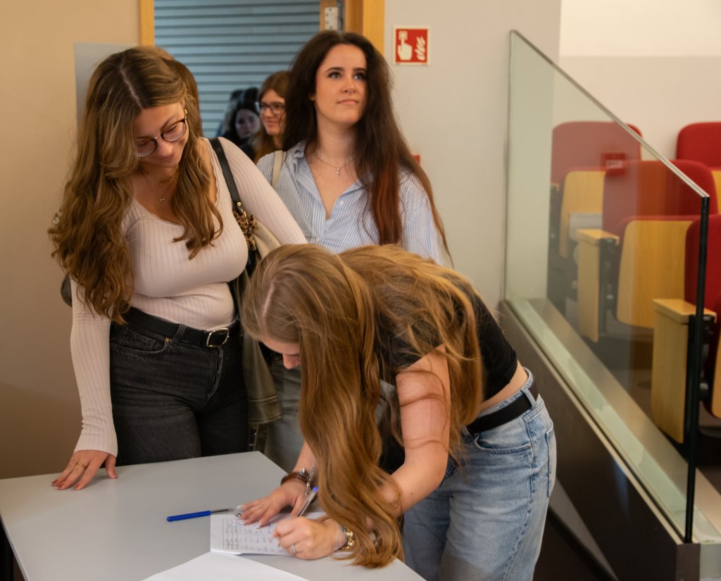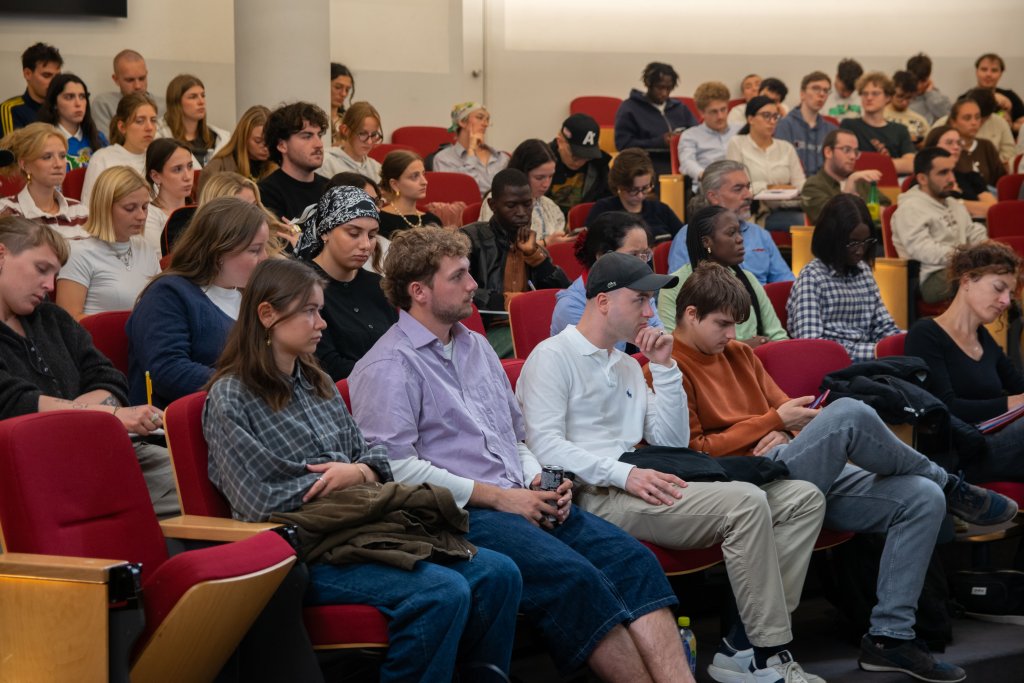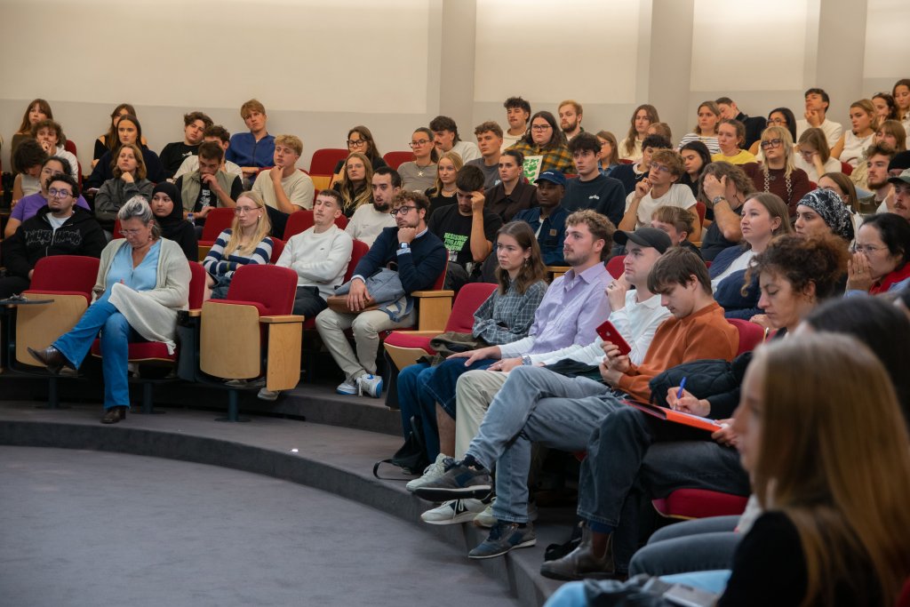 L’après-midi s’est poursuivie au Velge avec la leçon inaugurale donnée par Sarah Frères, journaliste et présidente de l’Association des Journalistes Professionnels (AJP). Son intervention, à la croisée du journalisme de terrain et de la défense des droits et valeurs de la profession, a offert aux étudiantes et étudiants une réflexion stimulante sur les défis actuels de l’information.