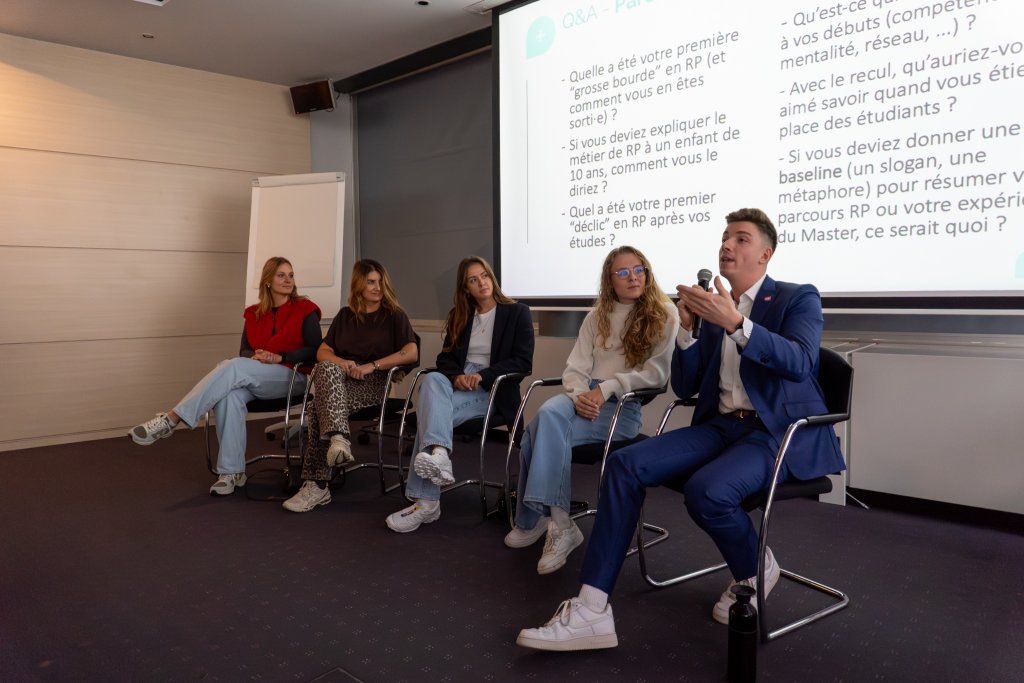 La rentrée des Masters 1 en Relations Publiques les a immergés instantanément dans l’univers de la section. Après les mots d’accueil d’Elise Maas, présidente du master, et la présentation du programme, cinq alumni sont venus partager leurs parcours professionnels : Théo Kos (Communication advisor, SNCB), Amélie Jennequin (Directrice, Quai10), Ysaline Gillard (Attachée de presse et chargée de projet, Nonante cinq), Marine Lemaire (Chargée de communication, Cap48) et Marion Thys (Chargée de communication interne, STIB). Leurs témoignages ont offert aux nouveaux arrivants un panorama concret des multiples débouchés du master.