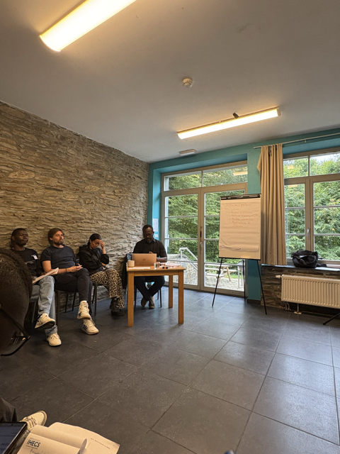 Pendant trois jours, loin des sollicitations extérieures, les étudiantes et étudiants de Master 1 en EAM se sont retrouvés dans un gîte à Cornimont, au cœur des Ardennes. Encadrés par Nadia Benkassem, Emmanuel Wathelet et Pudens Malibabo, ils ont vécu une immersion décisive pour s’intégrer, apprendre à se connaître et s’approprier l’esprit de la section. Baptiste Campion, retenu, avait toutefois préparé une intervention enregistrée.
