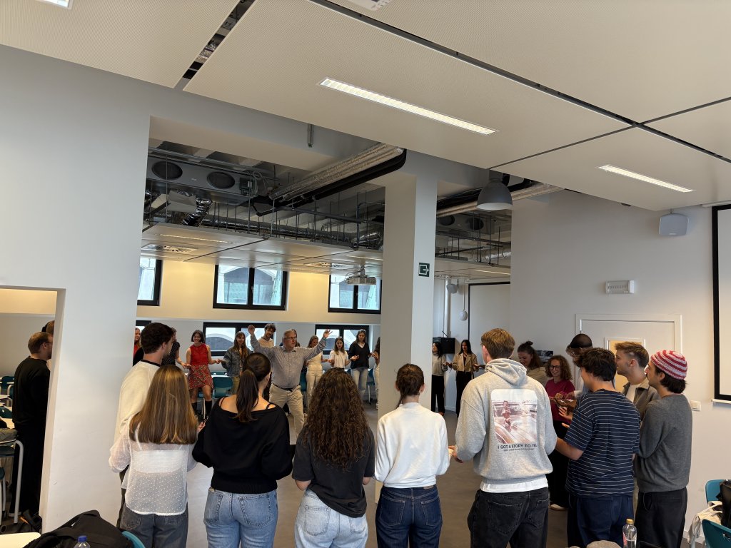 En ce qui concerne les Masters 1, le moment clé fut le Séminaire d’Émergence d’Idées (SE.Id) qui les a rassemblés pendant quatre jours. Le programme a alterné entre séances de réflexion, ateliers participatifs et moments plus informels : une leçon inaugurale donnée par Antonella Lacatena sur les dispositifs d’éducation permanente, des travaux en sous-groupes autour de thématiques socio-culturelles liées aux enjeux des futurs mémoires médiatiques et des exercices d’ice breakers. Enfin, un atelier co-créatif autour de la narration a permis aux étudiantes et étudiants d’exprimer artistiquement leur vision du groupe, tout en essayant de nouer des premiers liens.