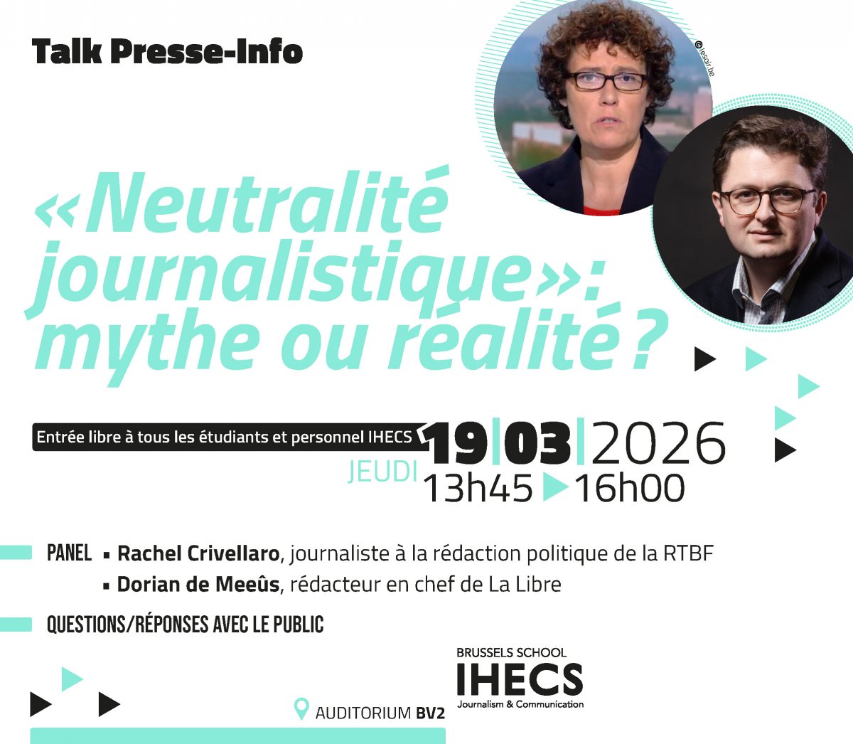 • Où : IHECS - Auditoire BV2